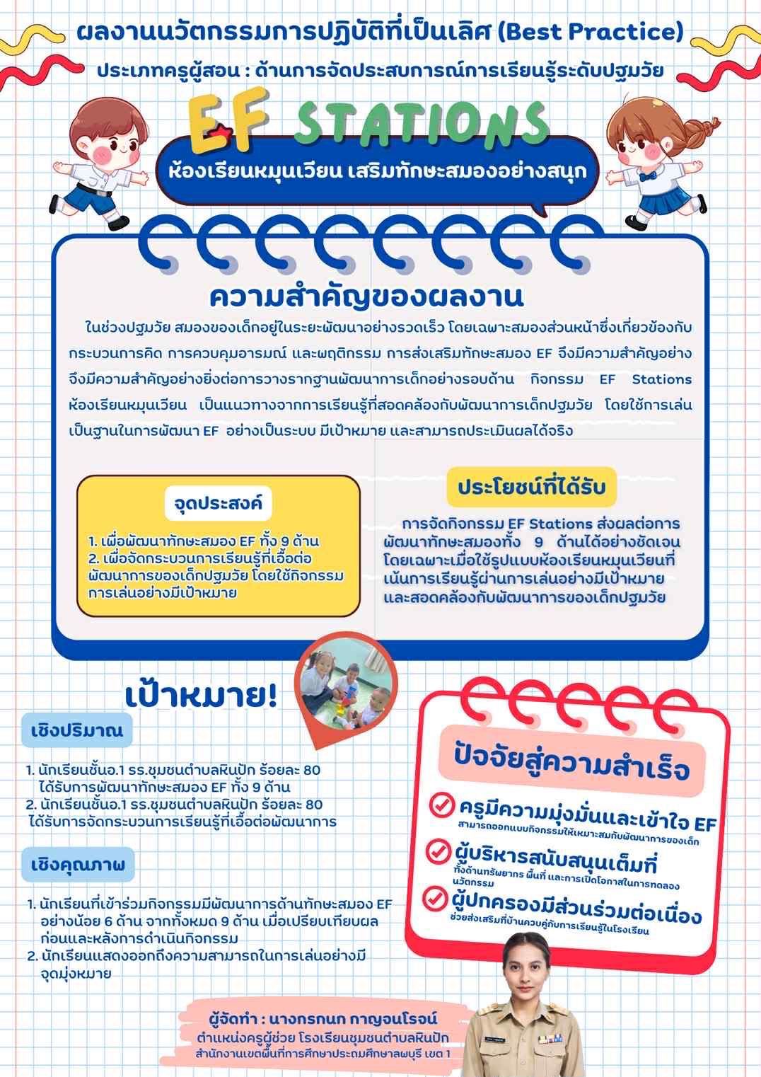 วิธีปฏิบัติที่เป็นเลิศ (Best Practice) เรื่อง EF Station ห้องเรียนหมุนเวียน เสริมทักษะสมองอย่างสนุก ระดับ ดี